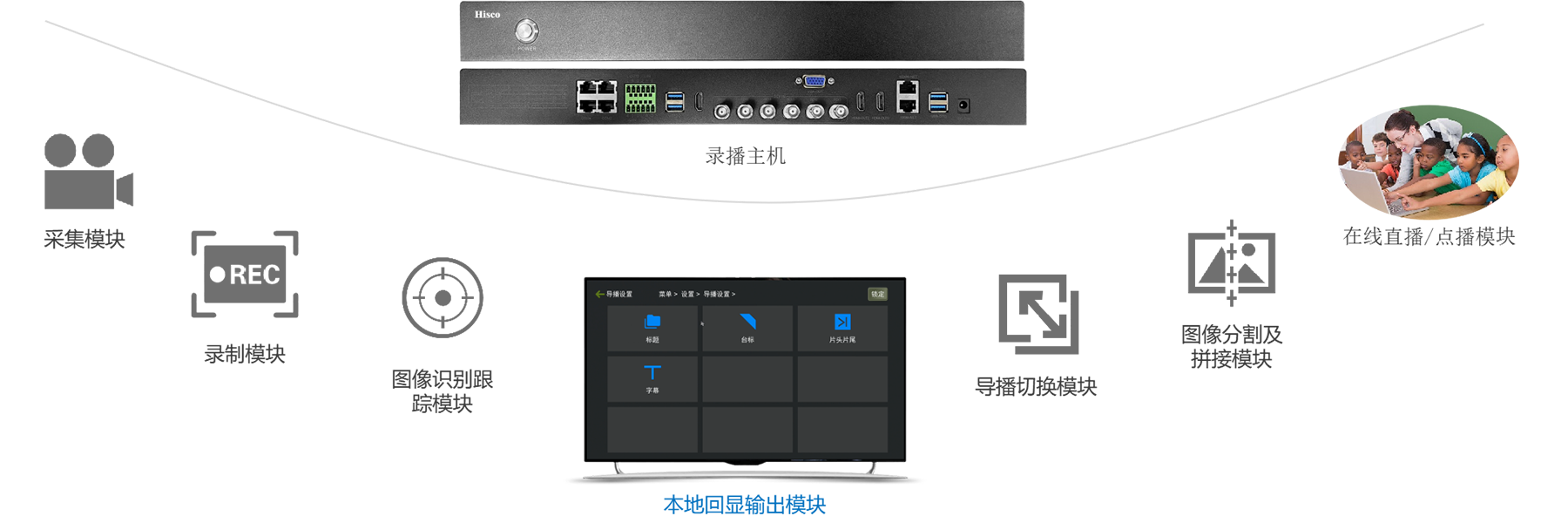 是通过摄像机和话筒将教室的视频(教师画面、学生画面、教学电脑PPT 、黑板)和音频(老师讲课语音、学生回答提问语音)采集后,录制生成视频文件存储下来,后期通过电脑登陆后点播视频文件播放或下载视频文件到本地播放,是一套实时的教学音视频存储记录设备。